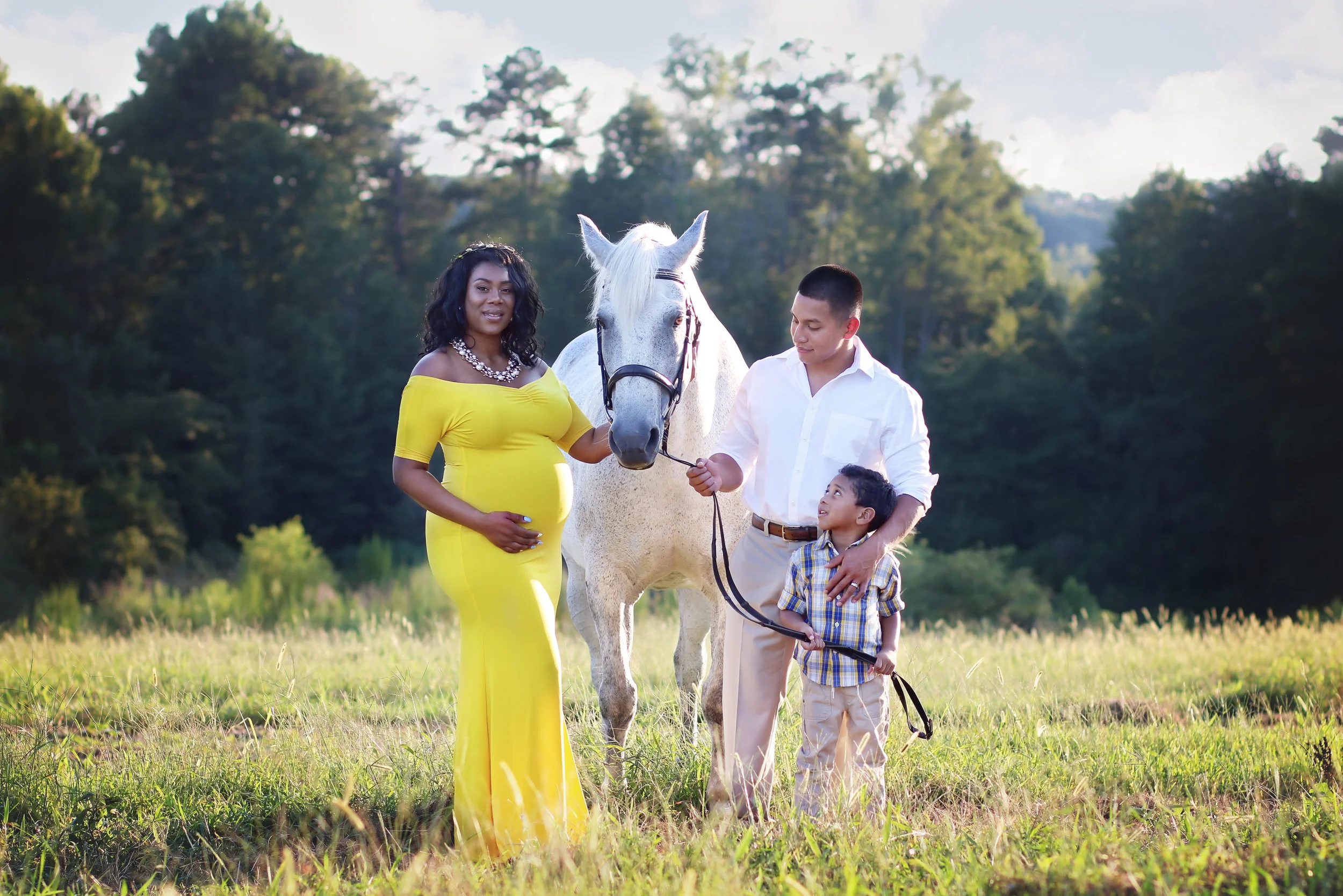 Syan loves horses (all animals really).  She fell in love with Bachelor at first site.  I found it fitting to do her maternity session on the farm with the open fields and rustic feel.  Her glamorous gown and the rustic feel of the farm worked.  It complimented her very well.   I loved the connection Syan and her family had with Bachelor.  It was beautiful.  It's funny how animals can sense precious cargo.  I truly enjoyed this session with her and her family.  Maternity sessions have a special vibe that I love.